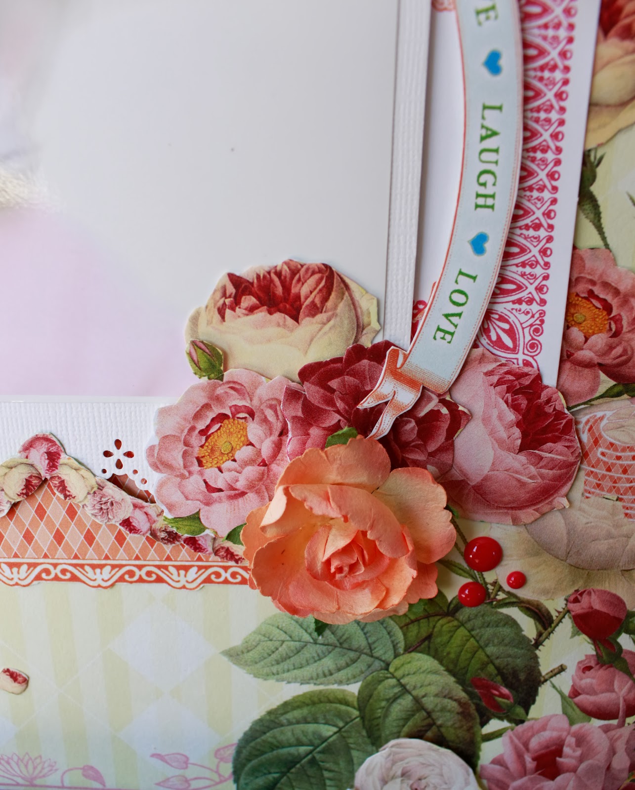 To add more interest in your fussy cut flowers add a singular Prima Bloom, it also adds contrast and perfect if your on a budget.