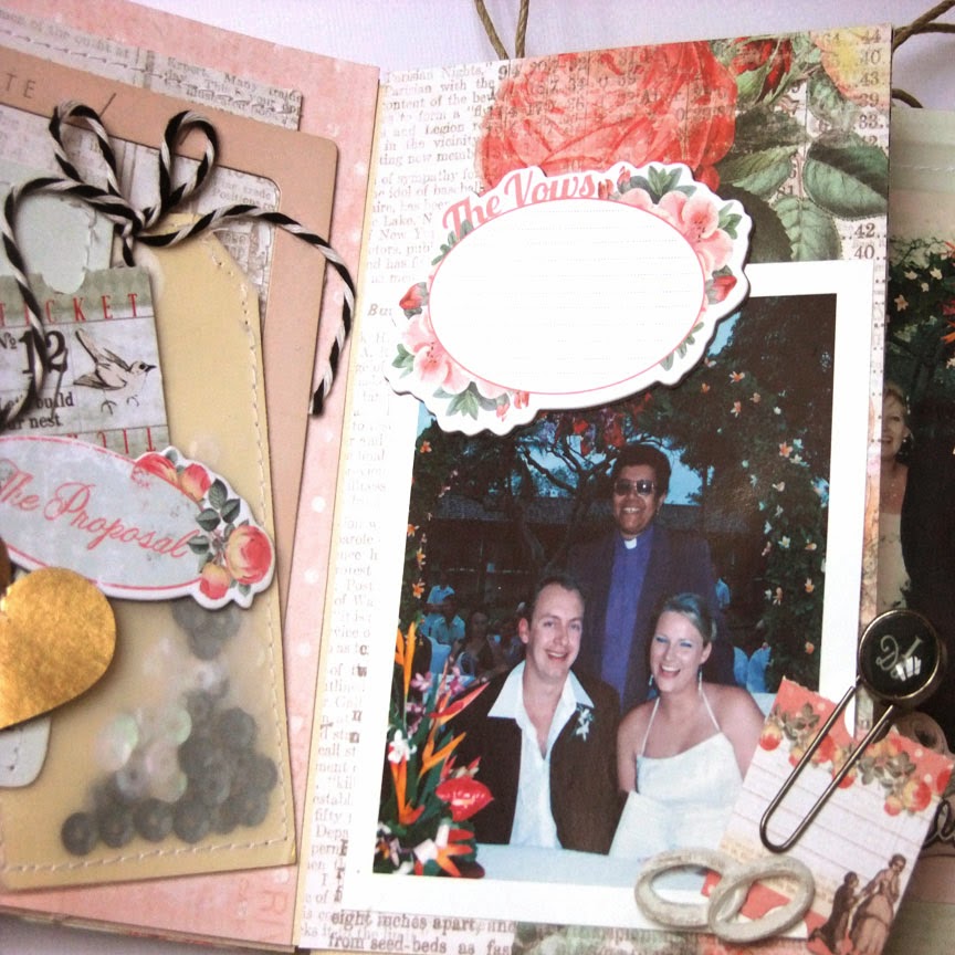 23. Adhere the Vows Chipboard piece to the top left of the photo.