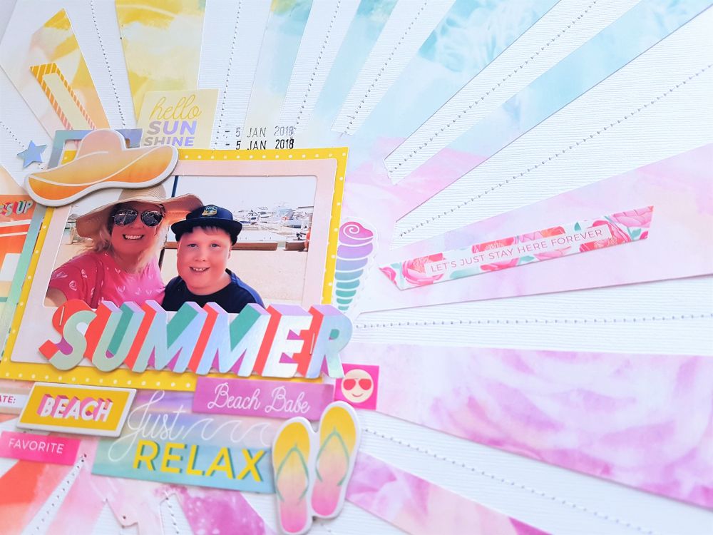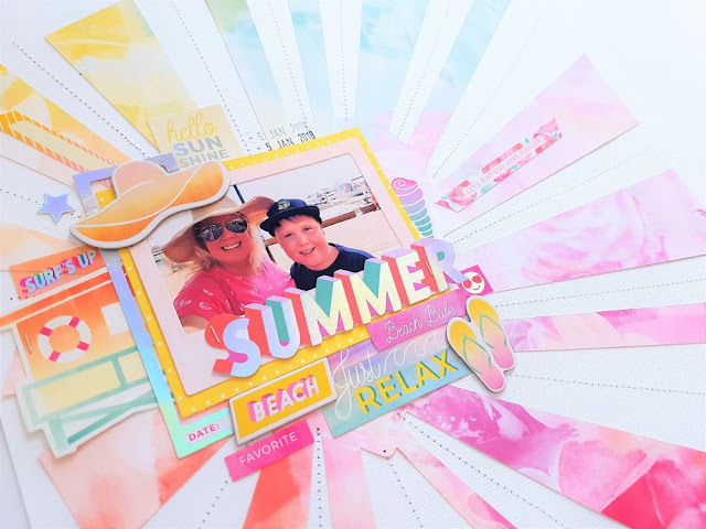 It's Tarrah McLean back with you and today I am sharing another Summer themed layout using the Pink Paislee Summer Lights collection! As Summer is now drawing to a close, I have some new shares for you next week using a new collection!