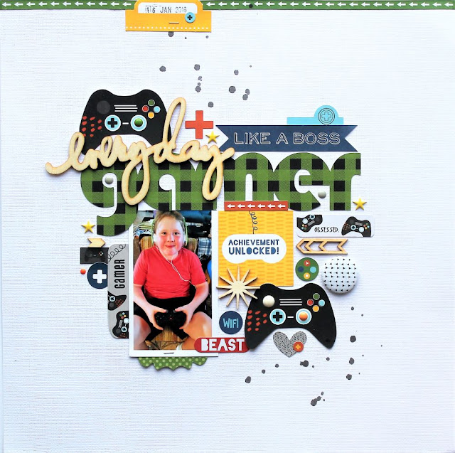 To begin this layout I decided to cut a title from a Just Nick Studio cut file set that went with the theme of my photo! My eldest son is a mad gamer so this title was perfect for this layout! The 'everyday' wood veneer piece from...