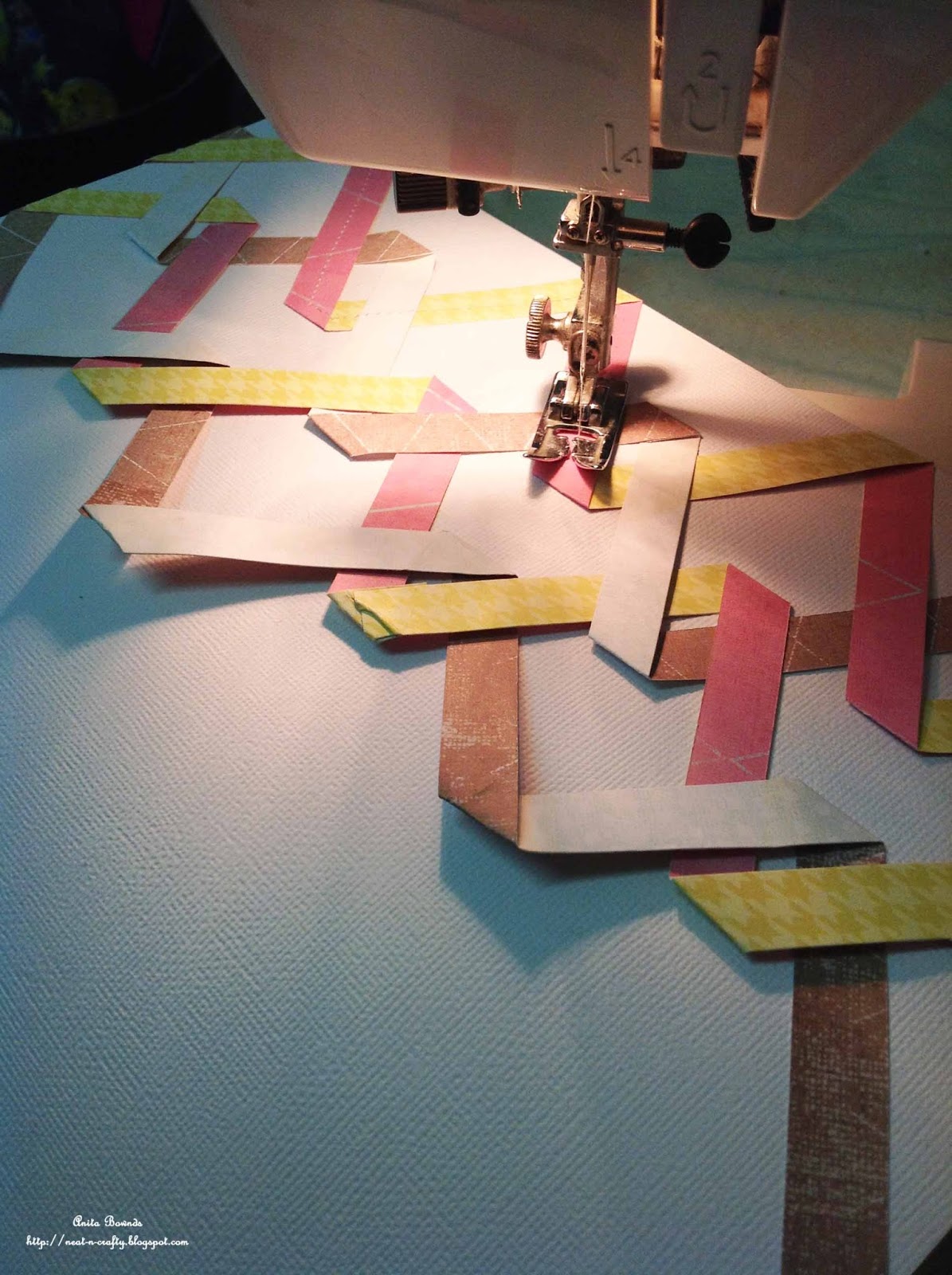 here are a few close up pics of sewing the paper design that you will see in the video