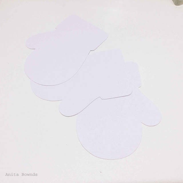 I started off by cutting out 4 mittens in white cardstock with my cameo