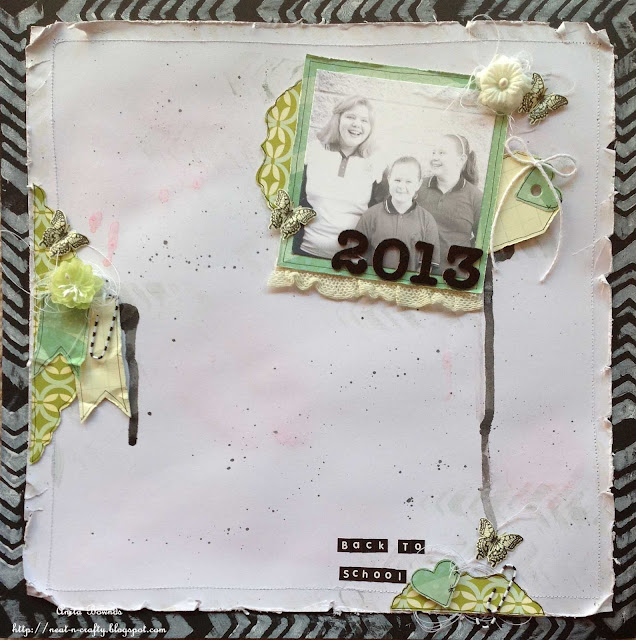 mixed gesso and a drop of black paint so it would be a light grey and stamped my foam stamp a few times