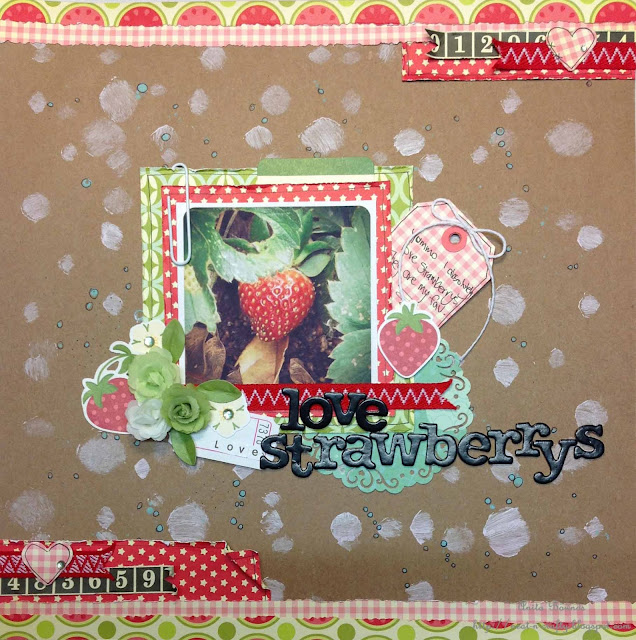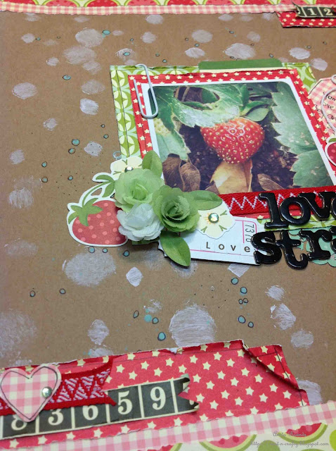 i mixed gesso and red paint and used a plastic card to smear it on my kraft cardstock and gesso with green paint and flicked it