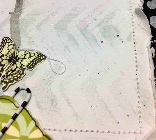 on my black cardstock i stamped a foam stamp that i made with gesso all around the edge of my black cardstock