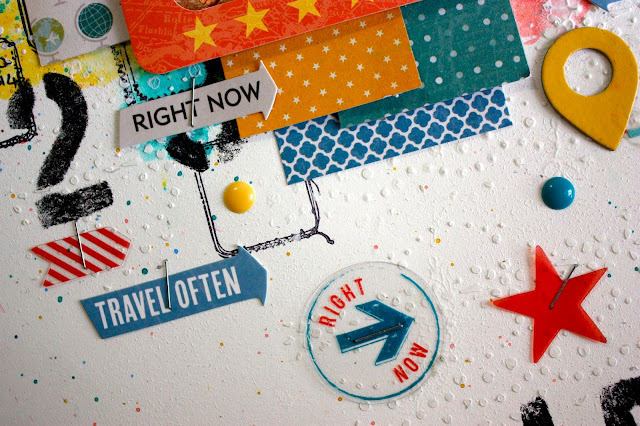 I used lots of the the ephemera and chipboard stickers and scattered them
