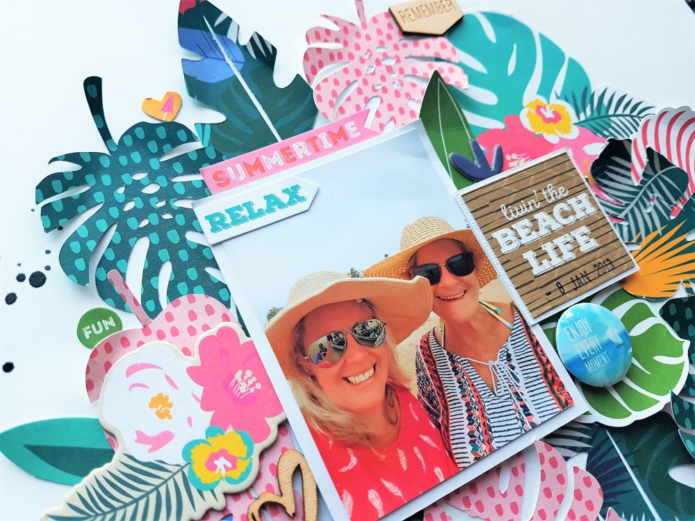 I just love the patterns in the papers in this collection so I started out by cutting some tropical leaves using my Silhouette Cameo from a few of the pretty papers.