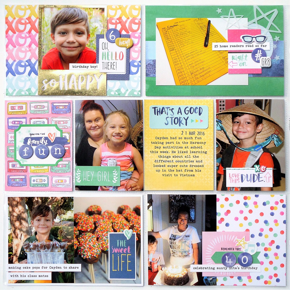 The colours and images are so bright and fun in this collection, and were very easy to mix with a range of photos to help me document week 12 from my album.