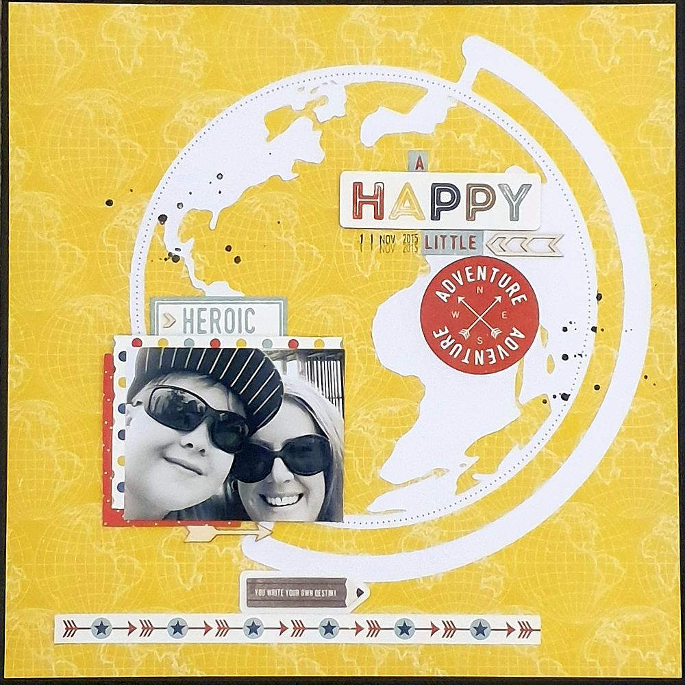 One of my favourite papers from the Petticoats and Pinstripes collection is that yellow globe paper. It is actually the 'B' side of the Lad Plaid paper! I decided to cut out a white globe cut file design to place over the top of the yellow...
