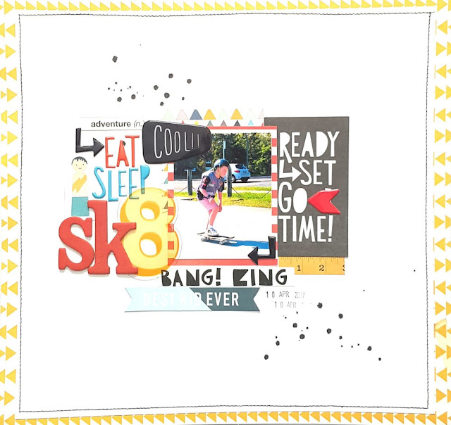 The background paper I chose for this layout reminded me of dirt tracks and so it was perfect for this layout and photo of my eldest son playing in the dirt! There were some great embellishments included in this range for me to include on this...