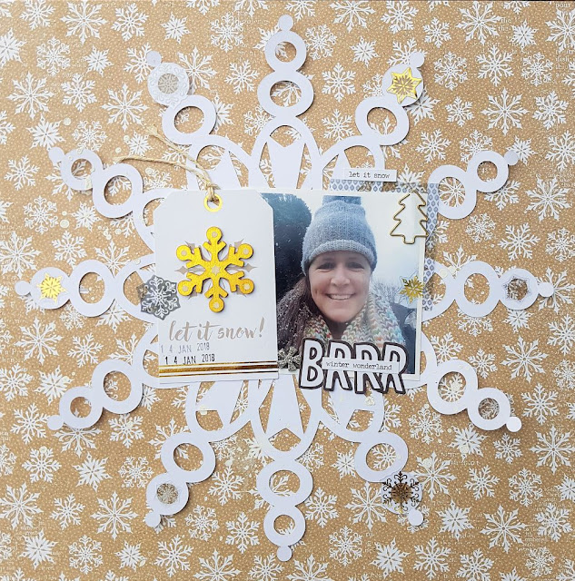 The Kraft and snowflake paper from the Yuletide collectionis super pretty, I knew I had to create a winter themed page as soon as I saw this paper! I cut a snowflake...