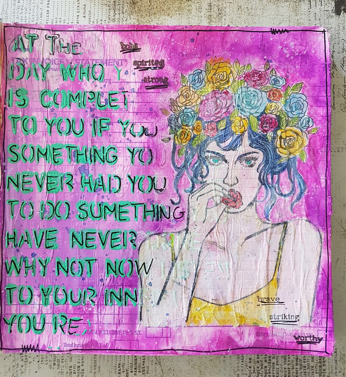 - Tags: 13 arts, 13 arts matte paint, Art Journal, distress crayons, Dylusions, Farrel Tailor, mixed media, prima princess, Sassy DT, Sassy Scrappers, stamping