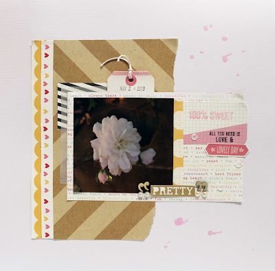 adding machine stitching to your pages and handmade tags and lots of mist splats is always fun