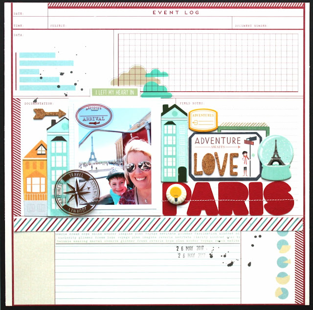 It's Tarrah McLean back with you sharing another travel themed layout! I have used a mixture of Shimelle's Go Now Go and Starshine collections on this layout!