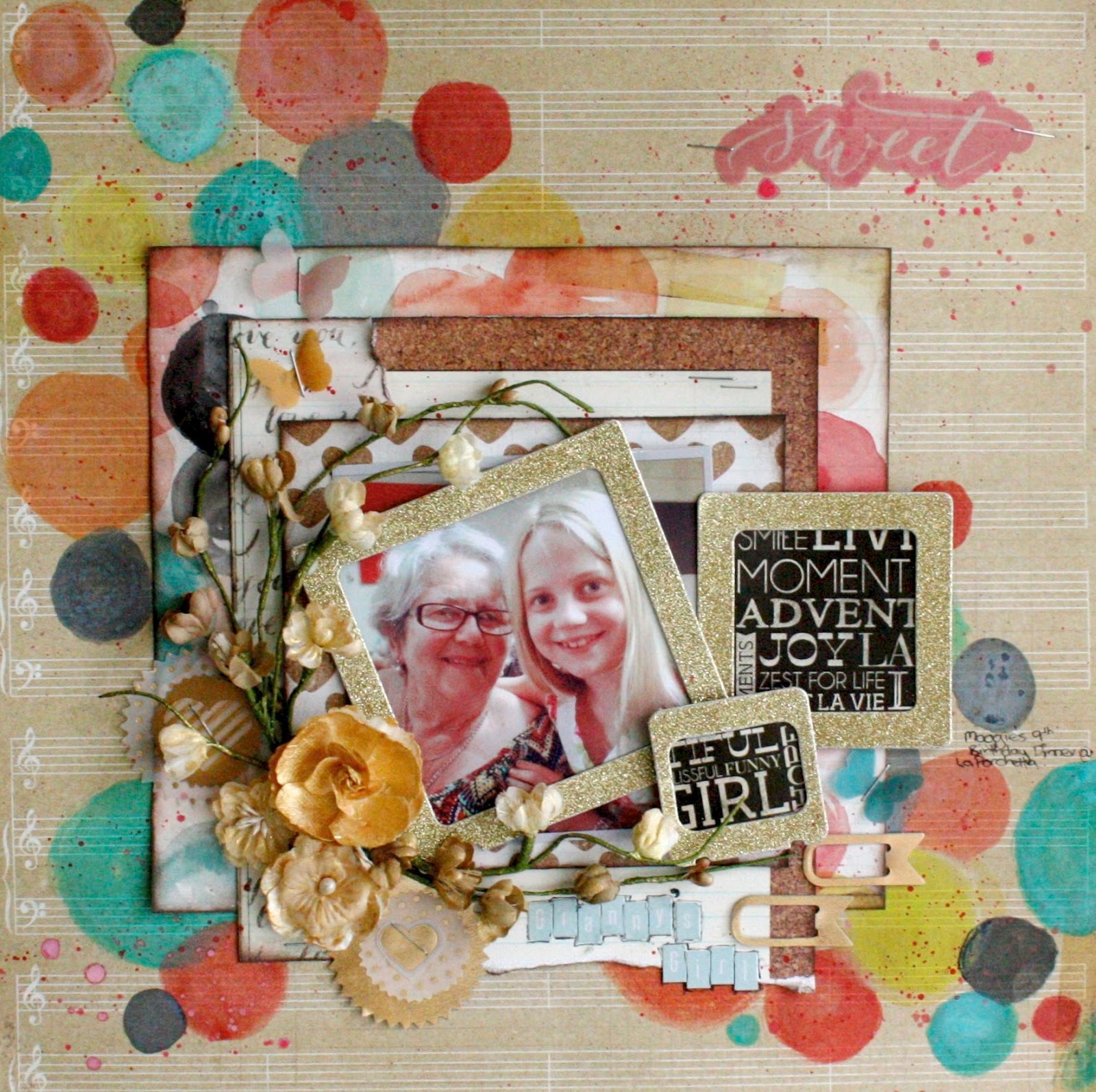 My page today is using the delightful papers, vellum shapes, and die cut frames