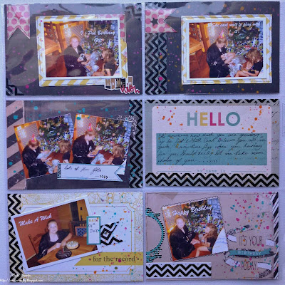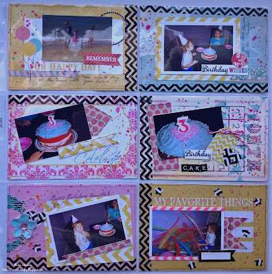 My focus of this page is all about my daughter eve on her third birthdayi flicked lots of paint on the papers to give it that confetti look and used lots of Chevron Washi Tape