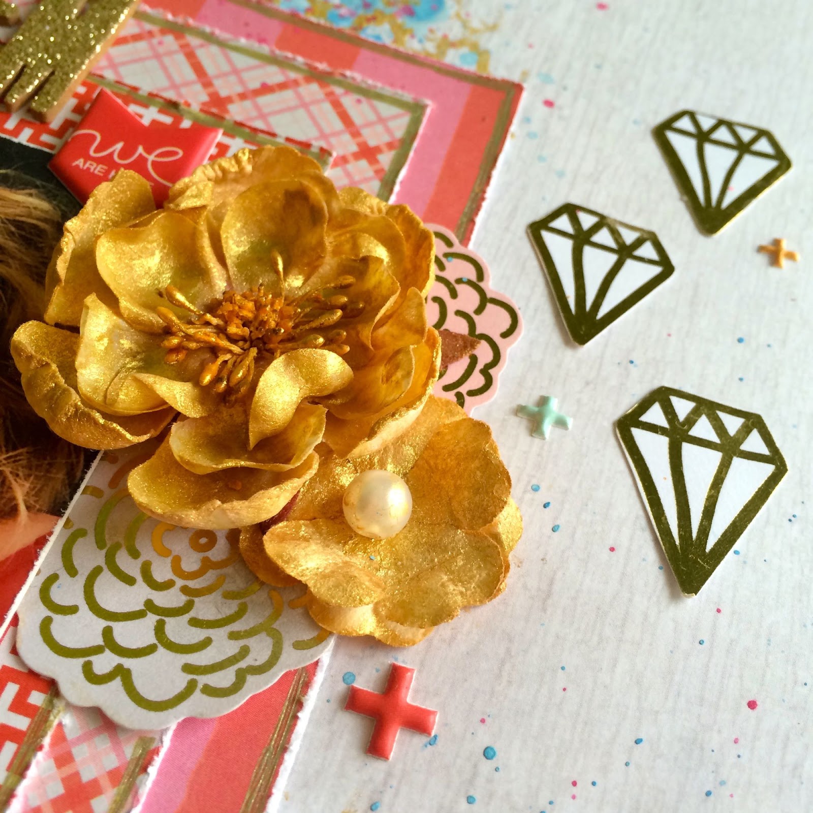 I also added some gold spray ink to the flowers and gold gel pen boarders around the patterned paper.