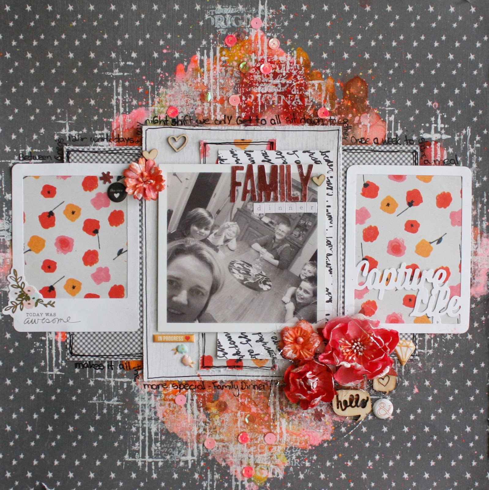 I had originally planned on doing an all Black and White page but I couldn't resist the
