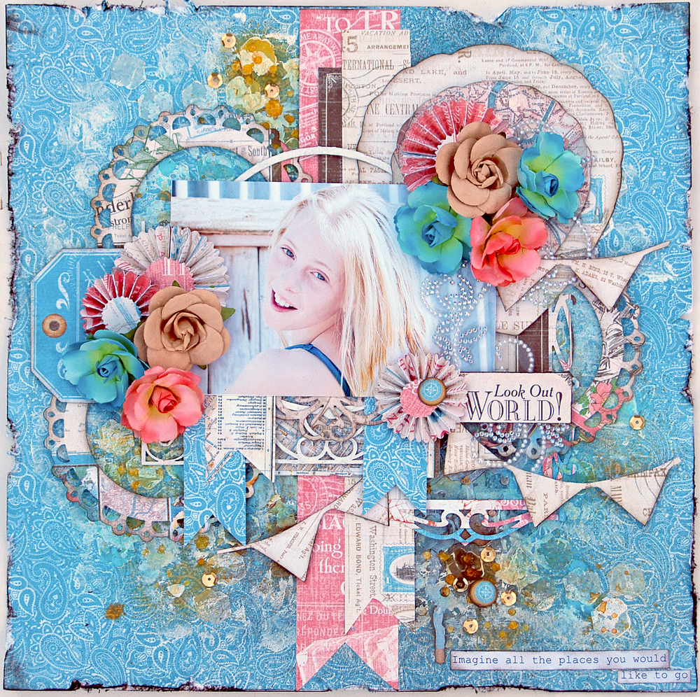 Trudi with you today with another project share created with the Graphic 45 Come Away With Me Collection. Again, I have mixed things up a bit with some more background altering. I also wanted to show the versatility of this collection by stepping away from the travel influences of the range.