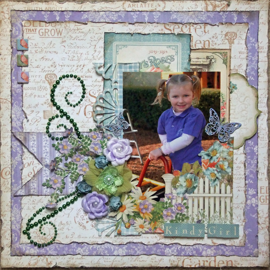 Shell Carman with you today with another Graphic 45 Secret Garden page. Purple is not a colour that pops up in the scrapping world often but it is one of my favourites. I tend to buy my girls lots of purple clothing so I like to match the girls clothes with my papers!