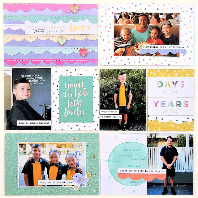 I have gone with a softer colour palette compared to my previous week's mixed media pockets, but they still flow nicely and there are definitely elements that carry over across both lots of pages.