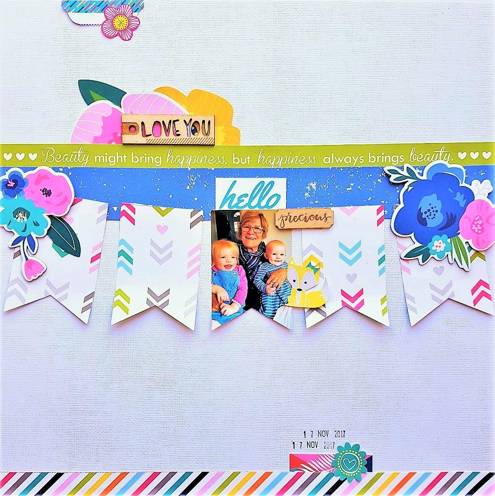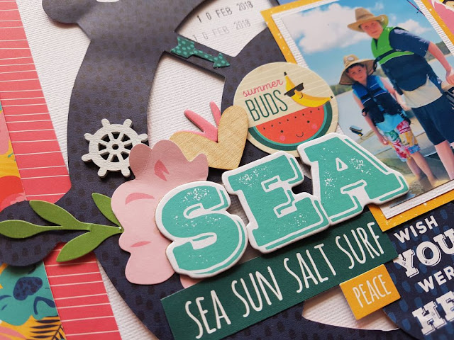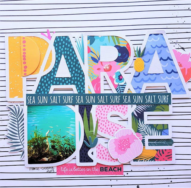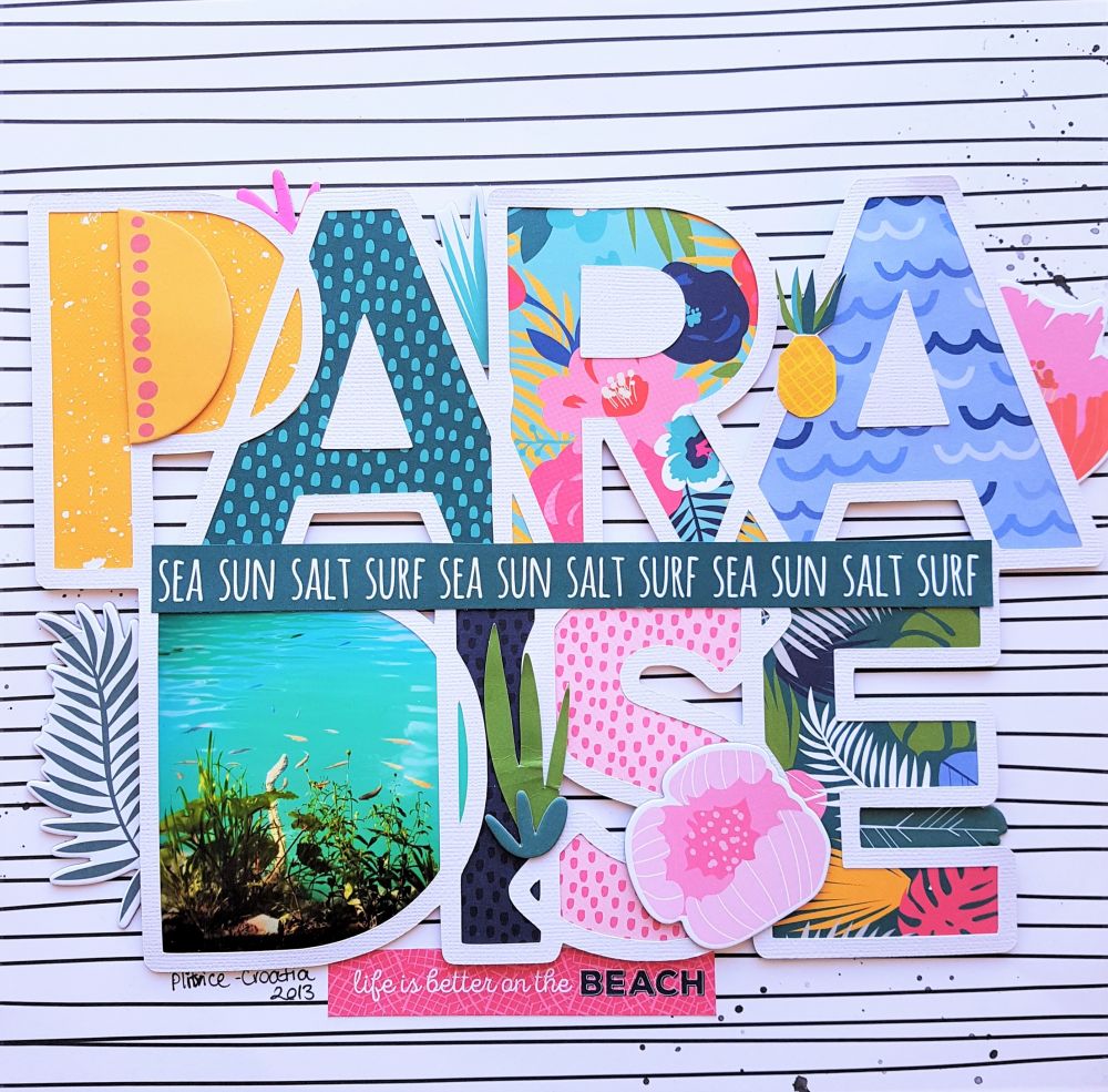 For this layout, I actually started out with the super cute borders paper from the Bella Blvd Molly collection as I received that paper in my kit along with the Island Escape collectionthis time too! I decided on a banner/pennant layout and took...