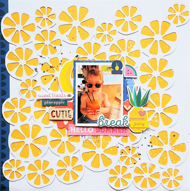 When I saw that bright yellow paper I just knew that I wanted to back a citrus design cut file! Lucky I ordered 2 of that paper so that I could use both sides as the other side has the cut aparts on it!