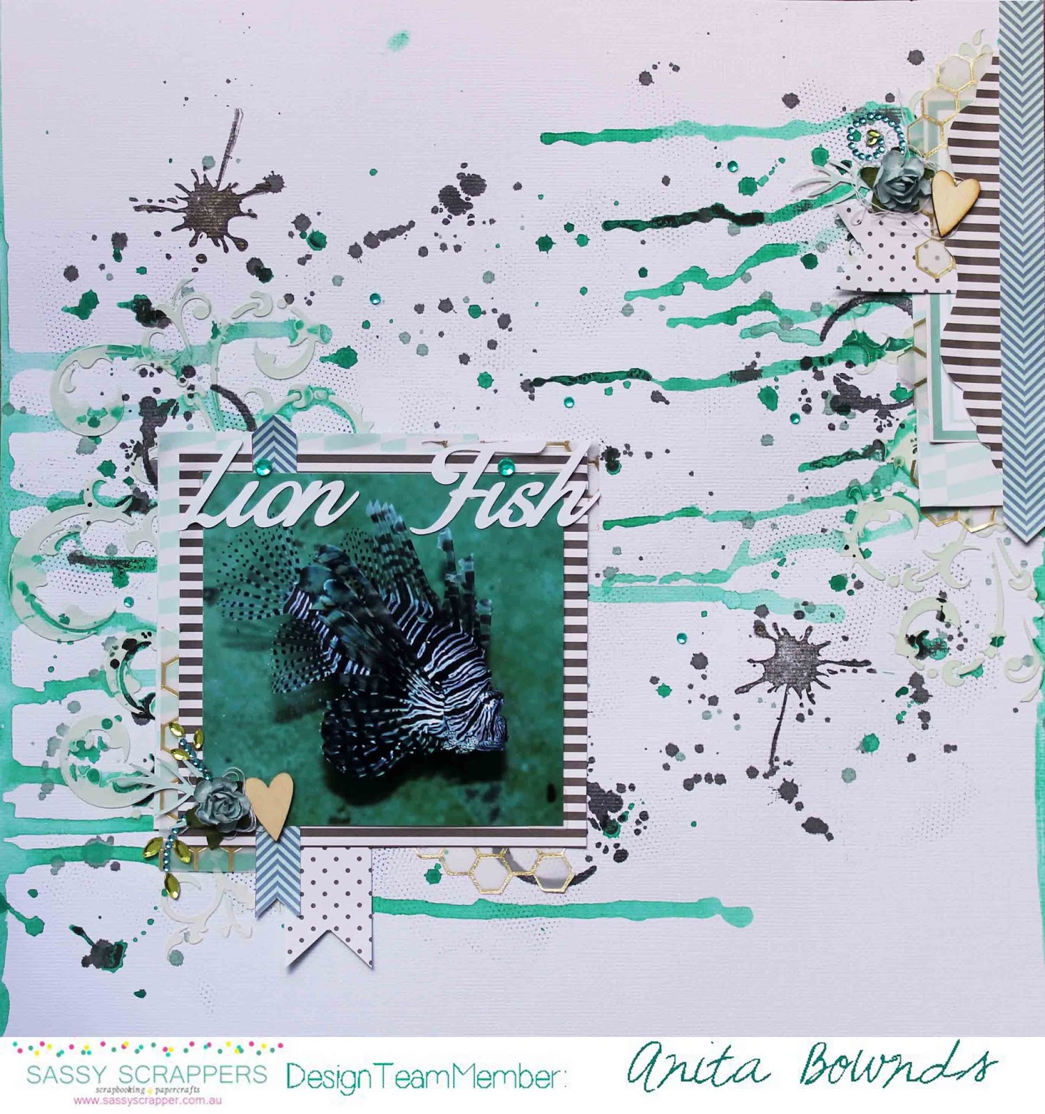 I started off with the dots texture stamp from kaisercraft and stamped it random over the page then used a stencil from ScrapFX with some texture paste
