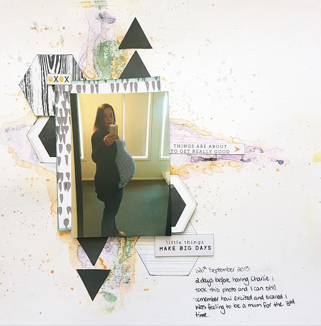 I honestly did not know where to start with my layout this week as this collection is awesome! I pulled out this background paper and was immediately inspired to add some circular...