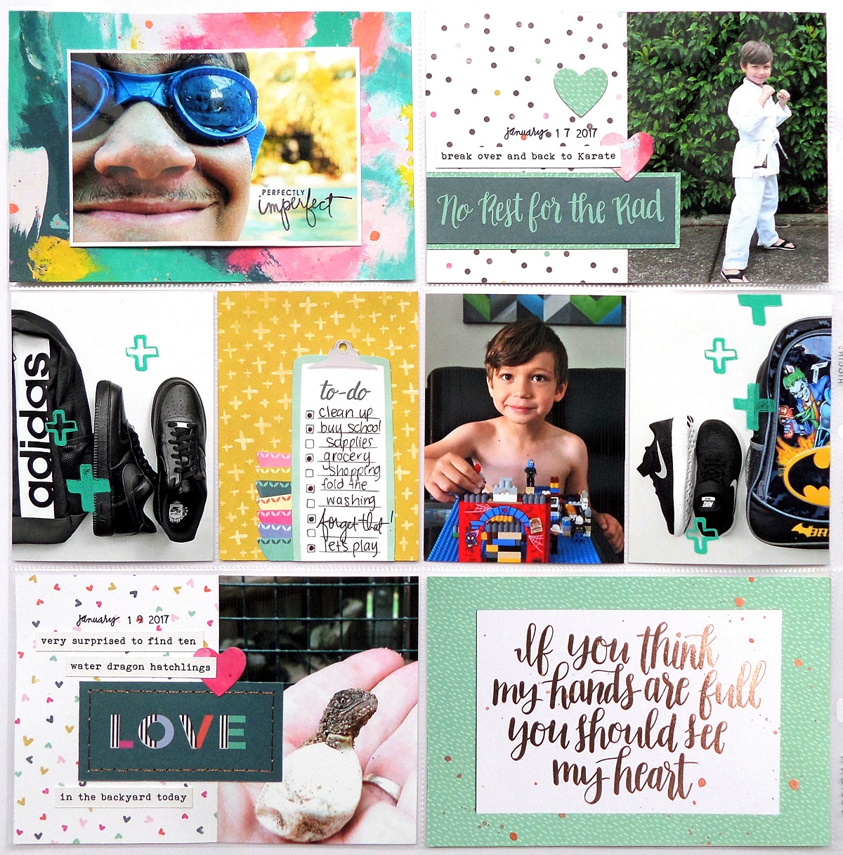 I have gone with a softer colour palette compared to my previous week's mixed media pockets, but they still flow nicely and there are definitely elements that carry over across both lots of pages.