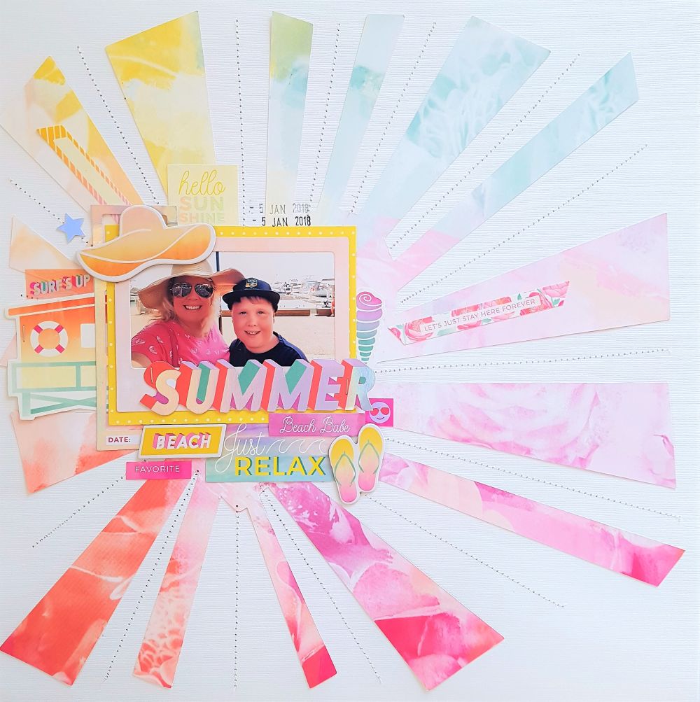 It's Tarrah McLean back with you and today I am sharing another Summer themed layout using the Pink Paislee Summer Lights collection! As Summer is now drawing to a close, I have some new shares for you next week using a new collection!