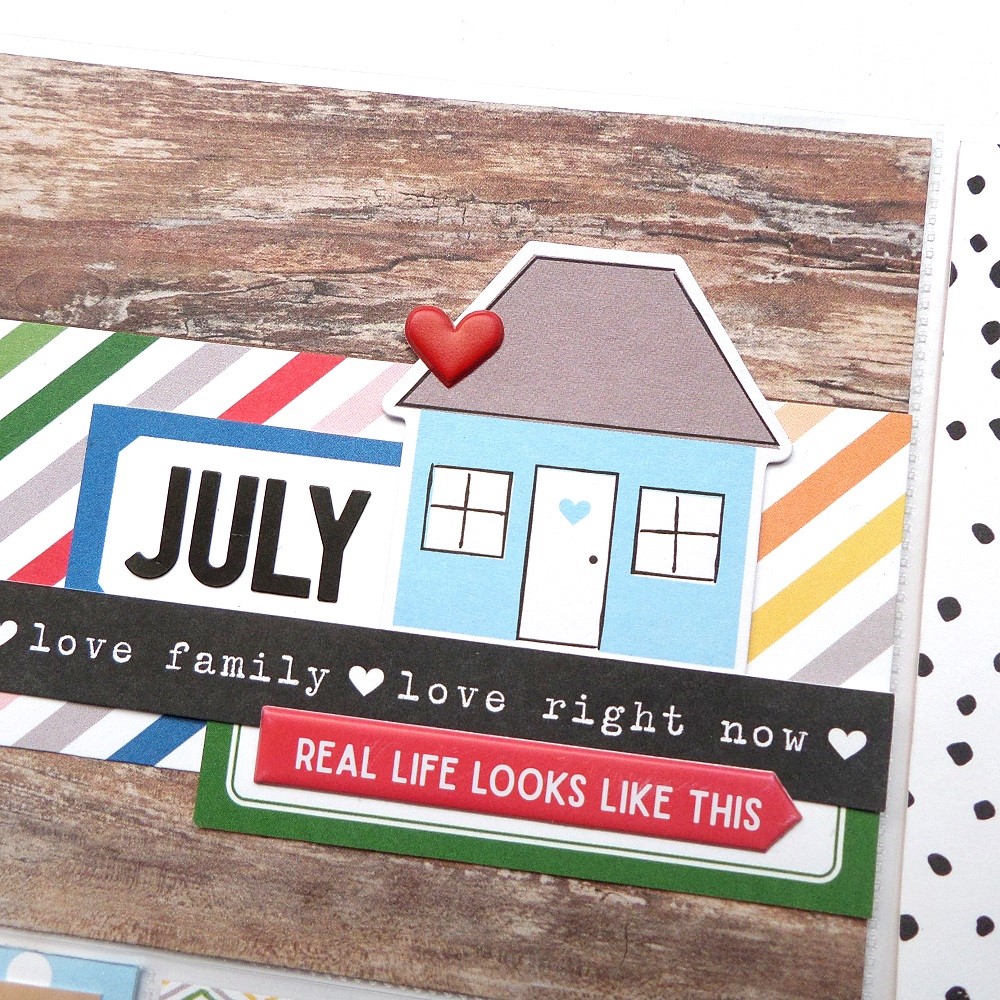 As always I began the month with a layered title card - combing several paper and cardstock elements with some simple alpha stickers and one of the fun sayings from the puffy...
