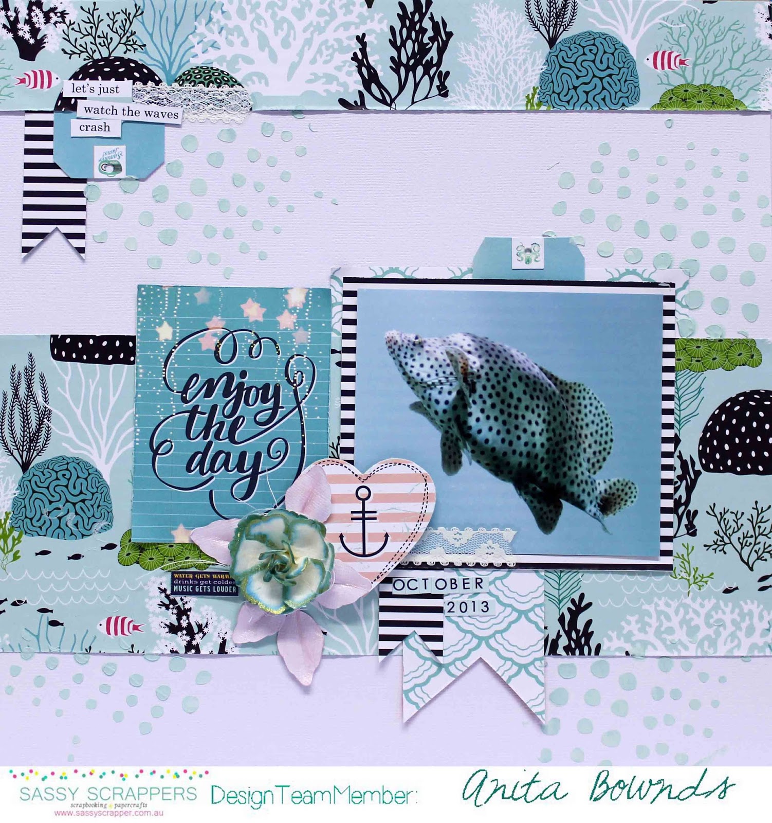 Anita here sharing my first page using the super lovely collection ocean melody by websters pages