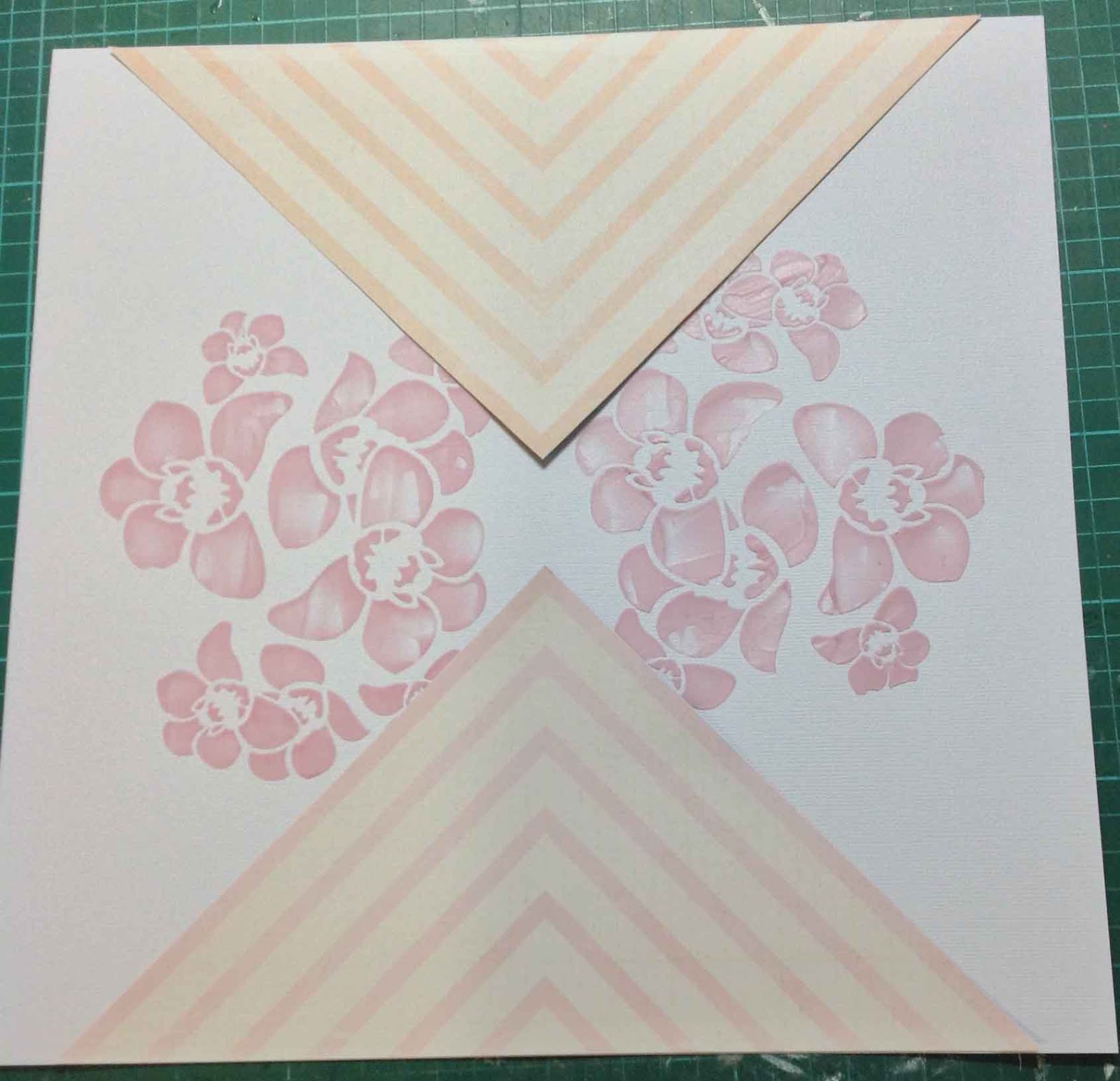 I was inspired by all the flowers and wanted to add pink texture to the background using a ScrapFX stencil and impasto paste and a drop of dusty pink paint