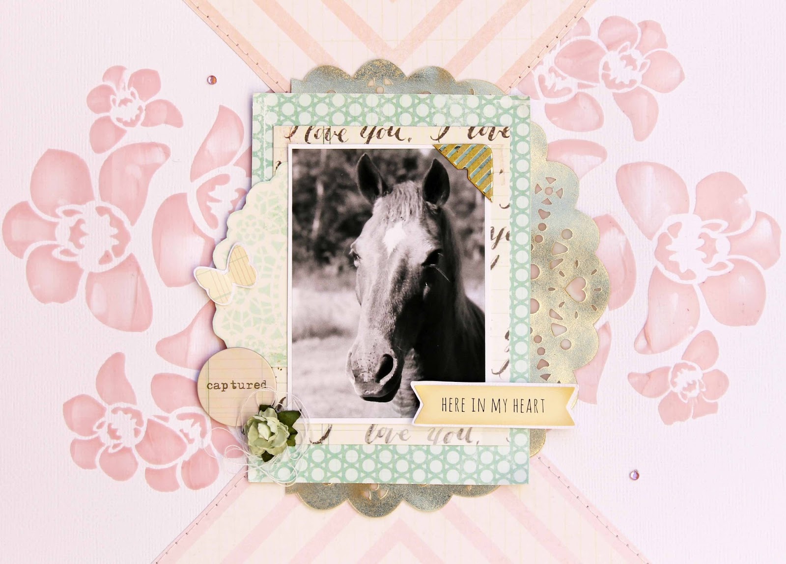 for my layout this week I was going for a soft look as their are some soft watercolours in the moodboard this month