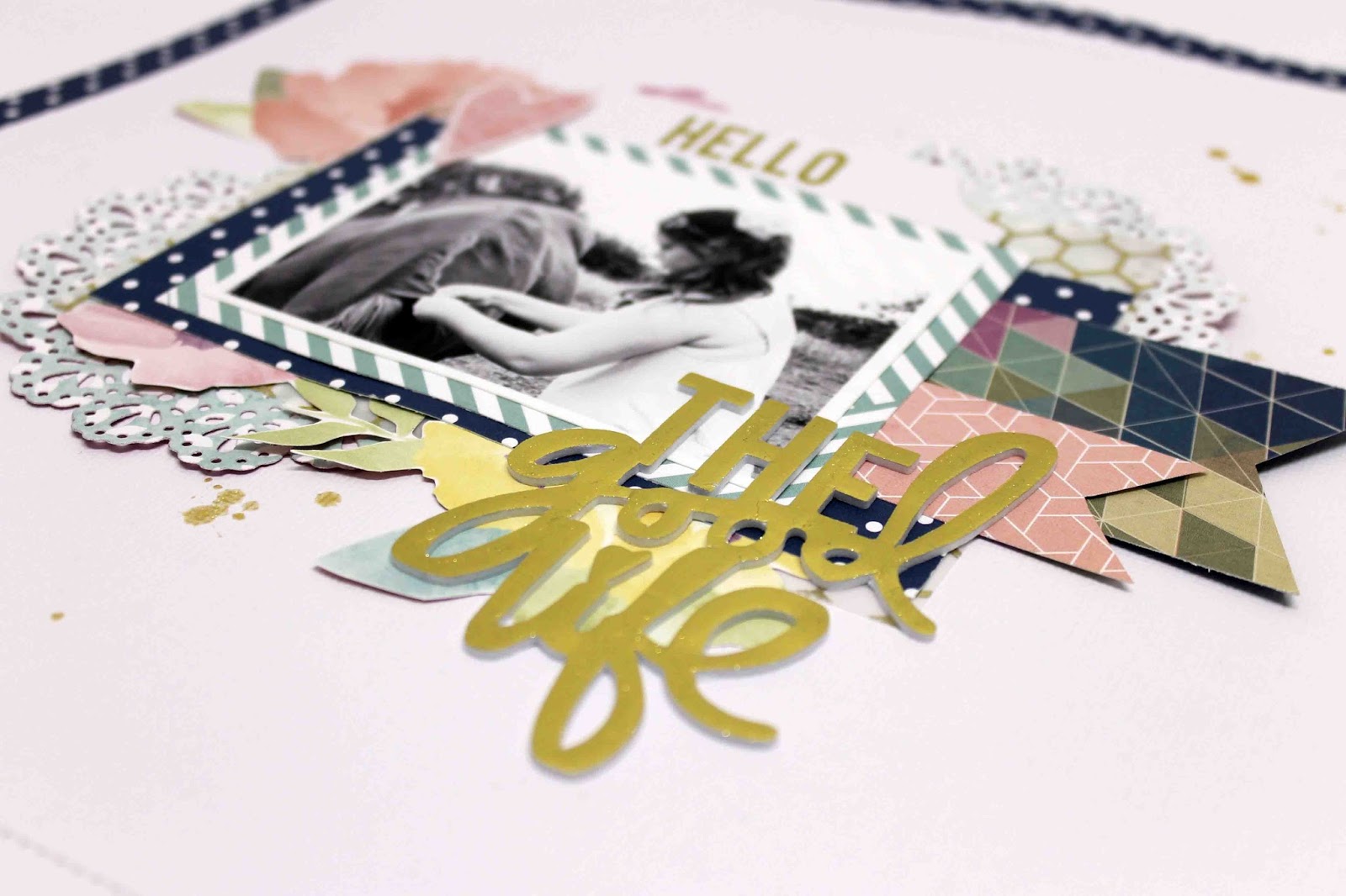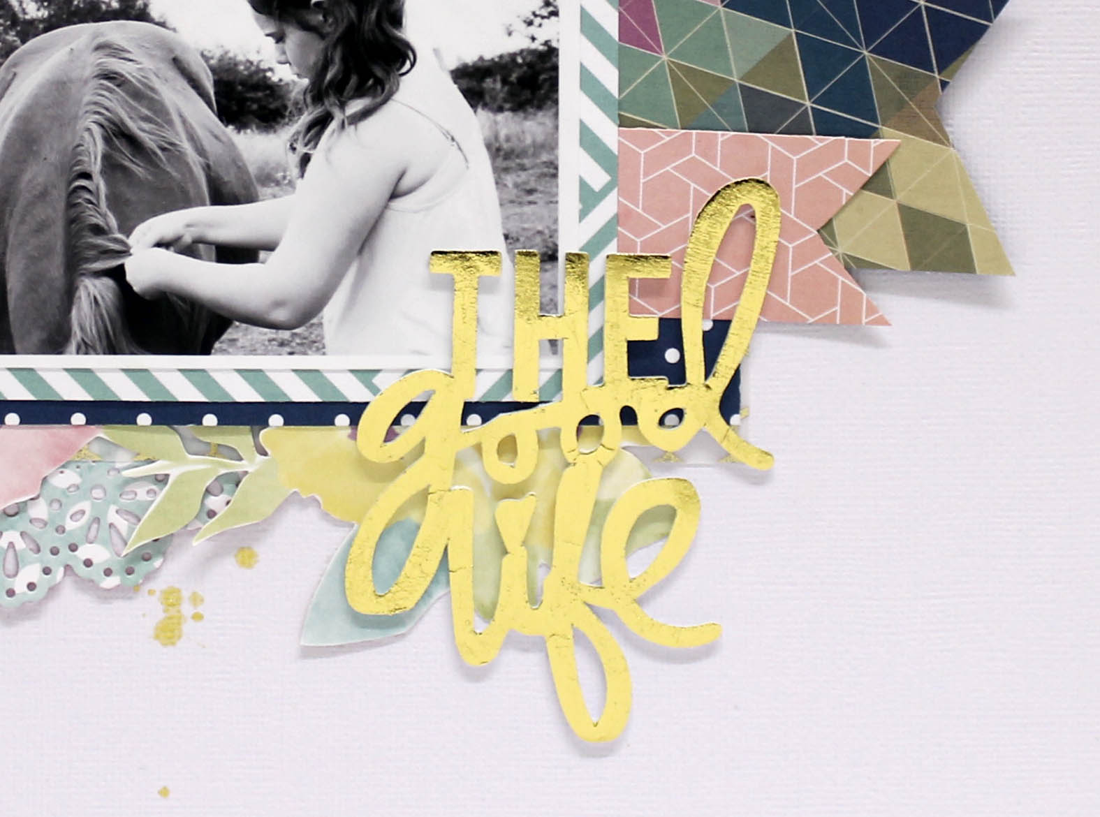As this time I was at home scraping I added the foil to my title after it was stuck to my layout