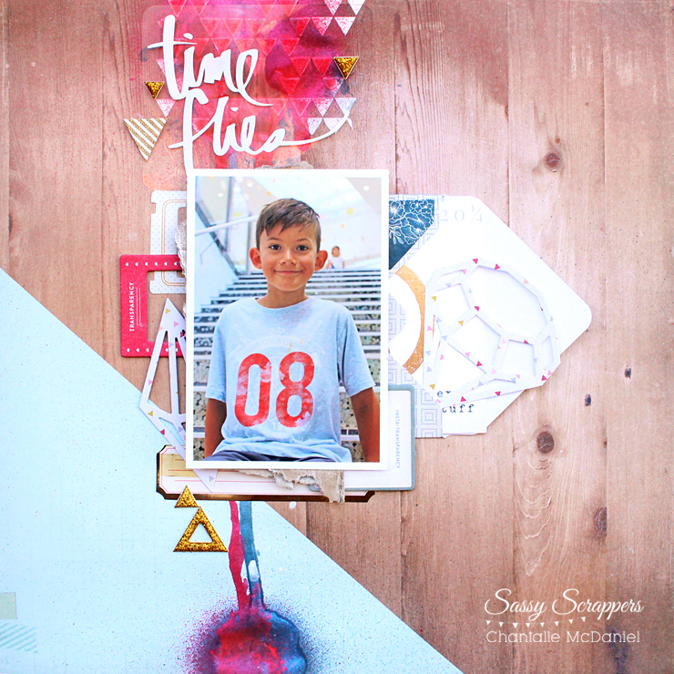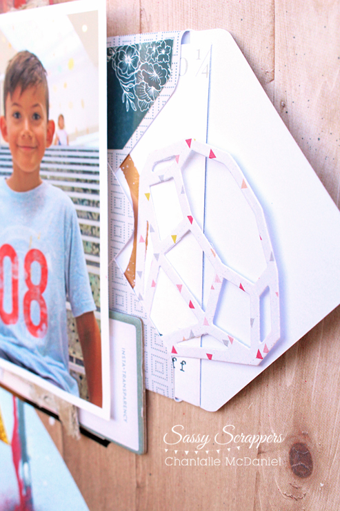 I just love the angled mix-match of prints on this Maggie Holmes Craft Market 'Studio' paper. I've used triangles and sharp lines to compliment the shape.