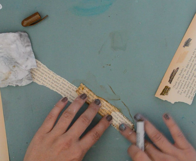 Once it was dry, I used some builders tape I bought from my local hardware store and used it like a stencil with both Texture Paste and Black Marble Dylusions Paint. I also used Vintage Photo Distress Crayon and a baby wipe to add a vintage feel to the page.