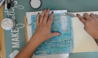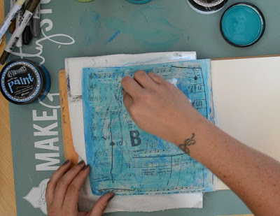 I then used a baby wipe to spread my Dylusions Paints - London Blue and Vibrant Turquoise.