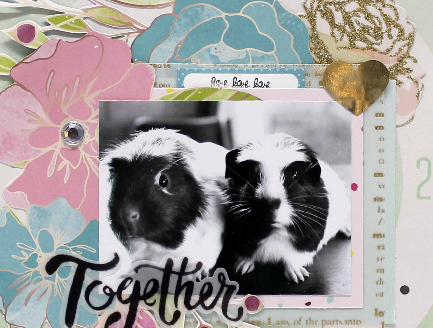 I loved the glitter rose and the gold heart so I just had to pop them on the page to