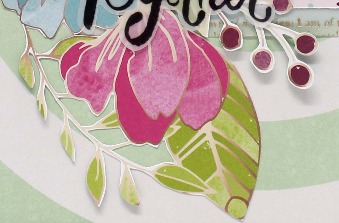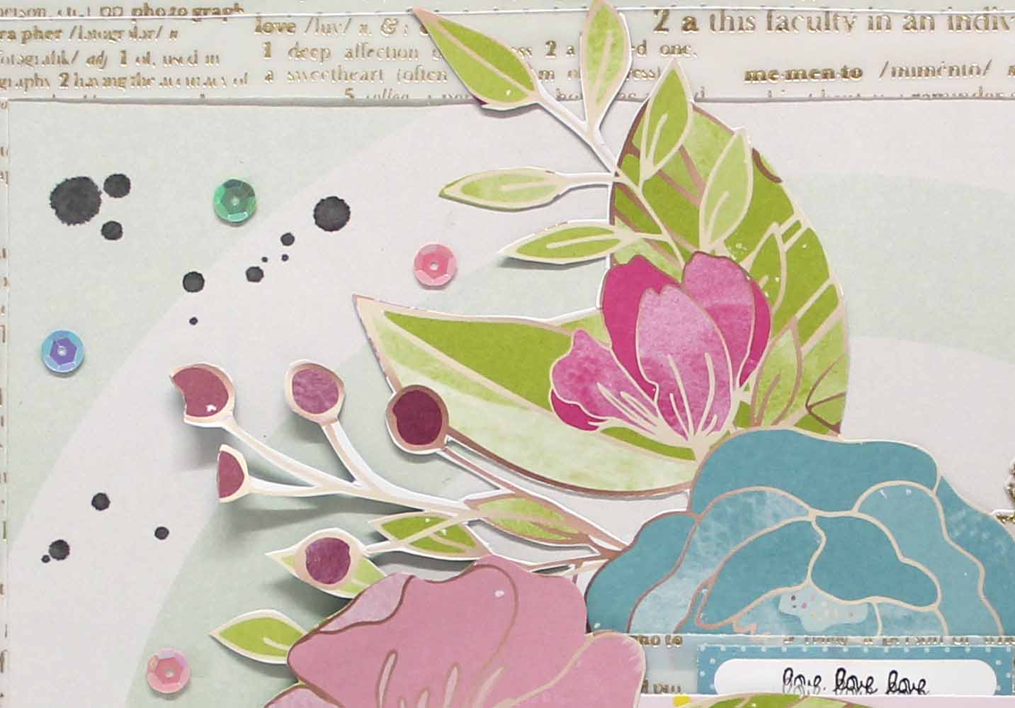 I fussy cut these lovely blooms and leaves tucking some under my photo and layers