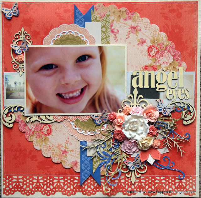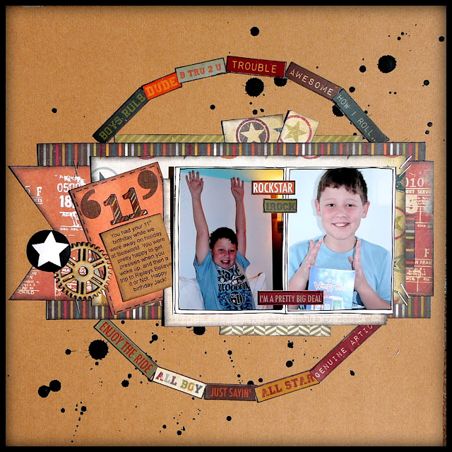 Just a quick post before I pick the kids up from school. I still had plenty of papers and embellishments left over from the gorgeous Webster's Pages kit Olga send me to make another layout and card. Really loving the colours in this one.
