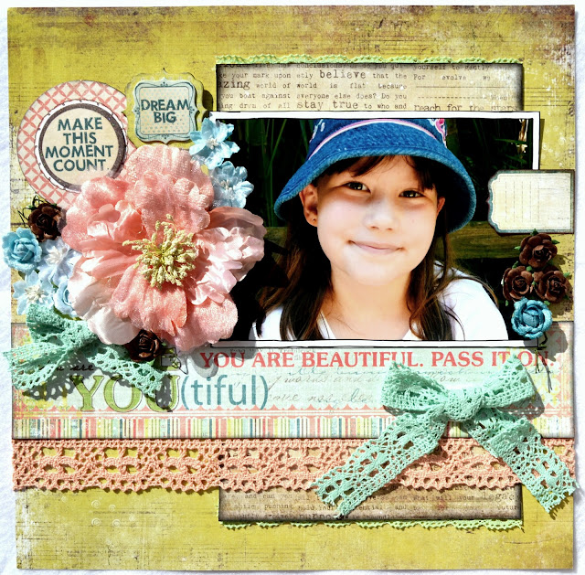 Products used - WRMK Everyday Moments, Defined, Phraseology, Anthologies Crochet Lace, Anthologies Layered Chipboard Words, Prima Miss Godivas Mermaid 9pk, Green Tara Brown Roses, Manor House Flower.